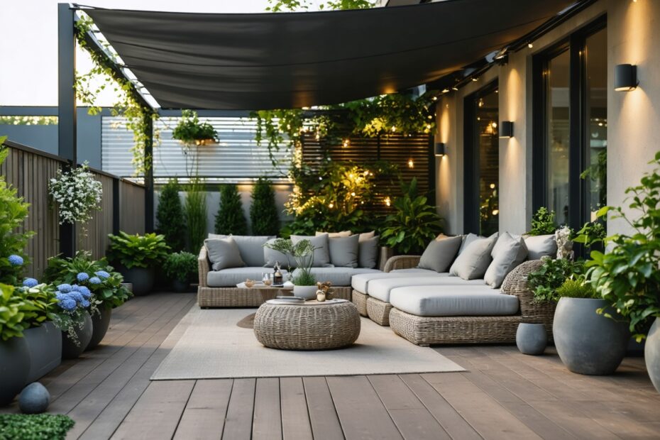 Die Integration von Pflanzen und natürlichen Materialien bringt Leben und Frische in den Außenbereich. Auch clevere Sonnenschutzlösungen tragen zur Nutzbarkeit bei und schützen vor Witterungseinflüssen.